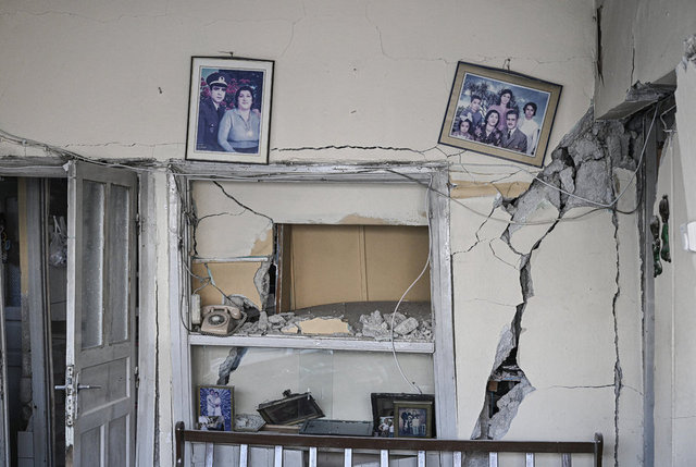 AA'nın haberine göre depremlerin ilçede yol açtığı yıkım, fotoğraf karelerine yansıdı.