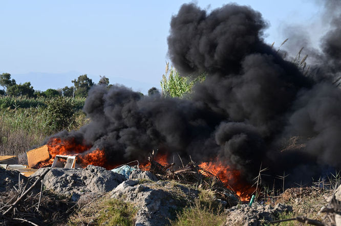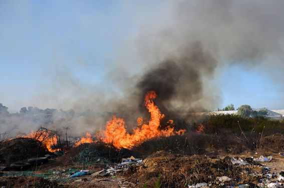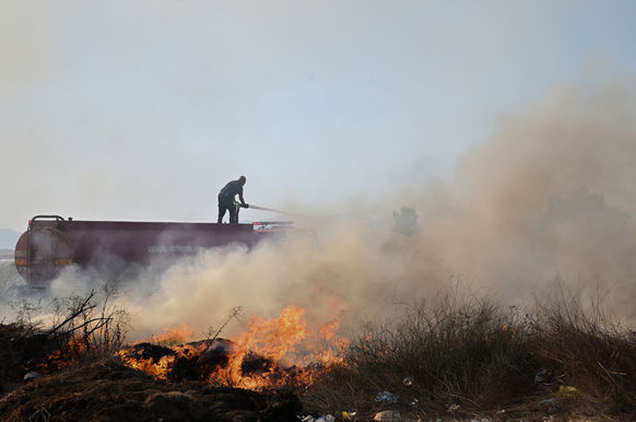 Antalya'nın Aksu ilçesinde çöp ve molozların bulunduğu alanda çıkan yangın ekiplerce söndürüldü