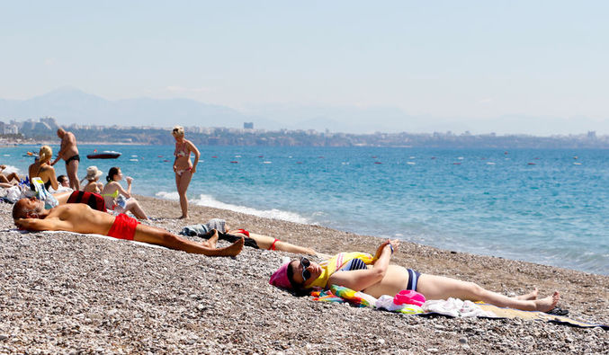 Antalya'nın ünlü Konyaaltı sahili, Ramazan ayı dolayısıyla yabancı tatilcilerle doldu. Tatilcilerin çoğunluğu Ruslardan oluştu. Hava sıcaklığının 22 derece, deniz suyu sıcaklığının 20 derece olarak ölçüldüğü kent merkezinde nem oranı ise yüzde 60 olarak belirlendi