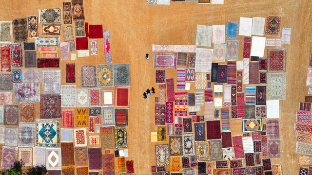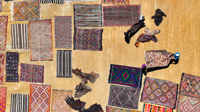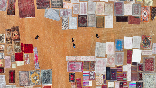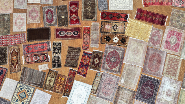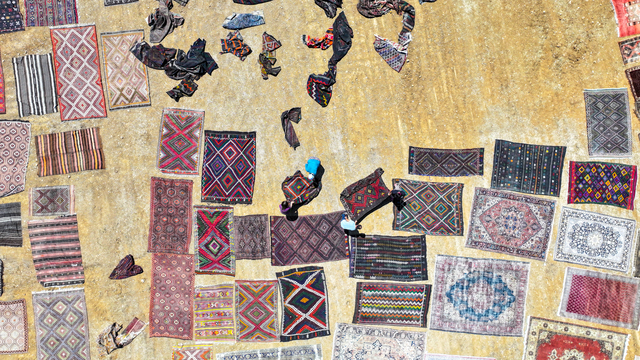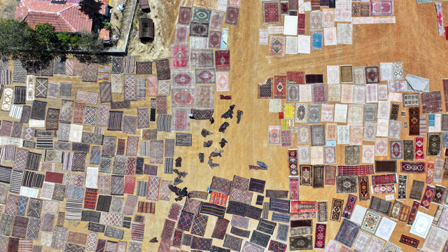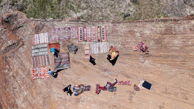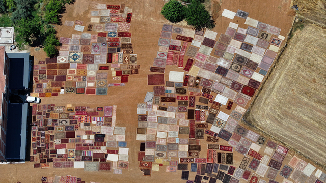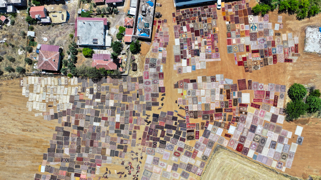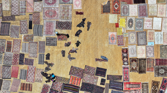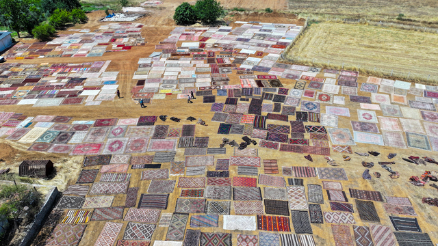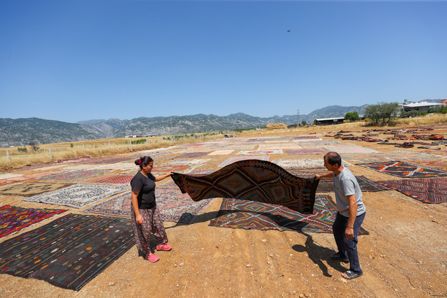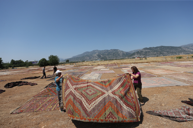 Türkiye'nin farklı bölgelerinden tek tek toplanan el dokuması halı ve kilimler, Antalya'nın Döşemealtı ilçesinde tarlalara serilmeye başlandı