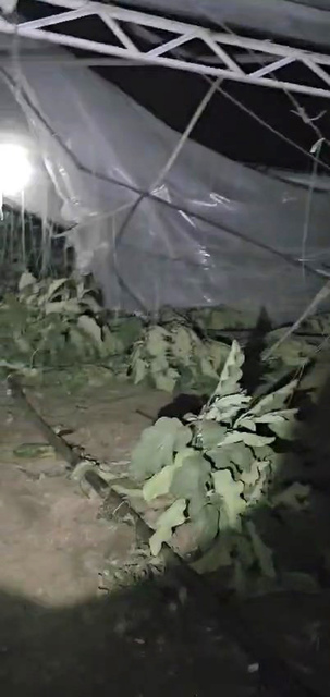 Külah minarenin üstünde asılı kaldı. Kırkgöz Gölü mevkisinde bulunan bir muz serasının üzerindeki naylon örtü, fırtına nedeniyle tamamen parçalandı.