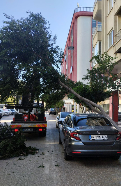 Antalya'da dün akşam saatlerinde etkisini gösteren fırtına nedeniyle ağaçlar devrildi, seraların naylon örtüleri yırtıldı. Bazı noktalarda araçların üzerine devrilen ağaçlar hasara neden oldu. Döşeme ilçesinde de bir cami minaresinin külahı, fırtına nedeniyle yerinden söküldü.