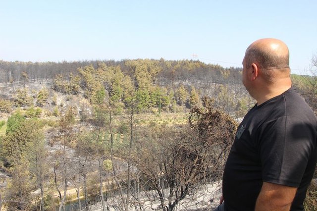 Farklı yerlere sıçrayarak yangını büyüttü. Ayaklarımız ve saçımız yanarak evin etrafından uzaklaştık. Jandarmalarda araçları ile bölgeden uzaklaştı. Geri gelince bunu bulduk. Maddi zarar telafi edilebilir ama şu gördüğümüz ormanlar kaç senede büyür tahmin edemiyorum” diye konuştu.