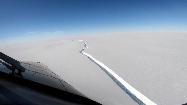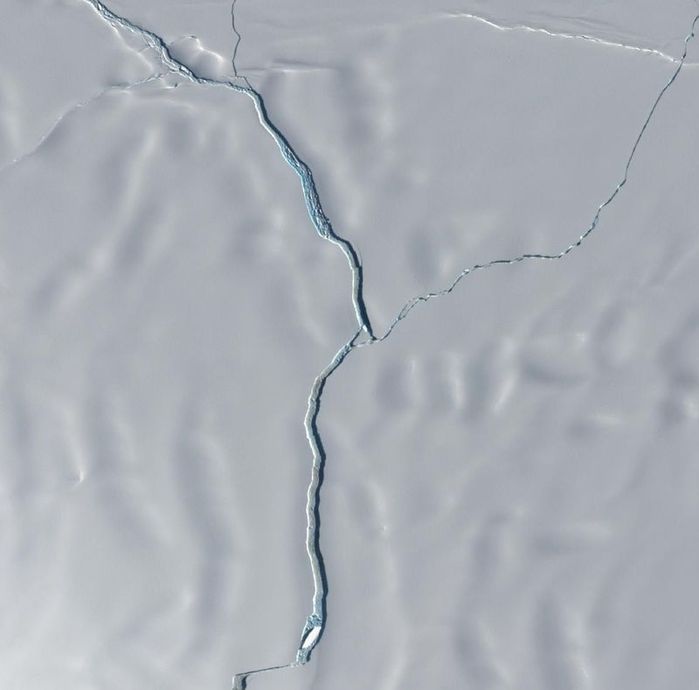 Avrupa Birliği Yeryüzü Gözlem Programı Copernicus!a ait Sentinel 2 uydusu tarafından buzulun çatlağı uzaydan fotoğraflandı. İngiliz Antarktika Araştırması (BAS) uzmanları, derin yarıklardan oluşan çatlağı havadan görüntüledi.