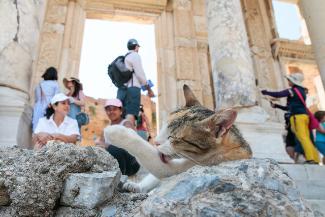 Geçmişi milattan önce 3. yüzyıla dayanan Efes Antik Kenti, dünyanın her yerinden turistleri ağırlamasının yanı sıra sahipsiz kedilere ev sahipliği yapıyor