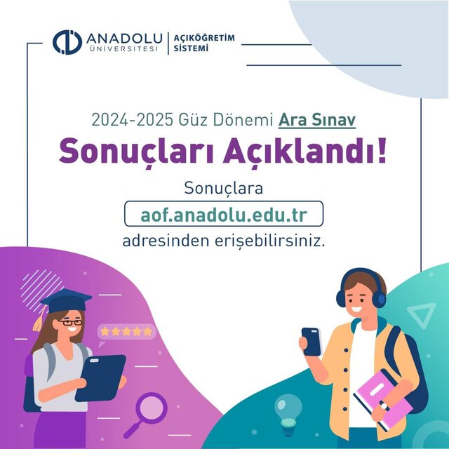 2024-2025 Güz Dönemi Ara Sınav sonuçlarınıza http://aof.anadolu.edu.tr adresinden erişebilirsiniz.