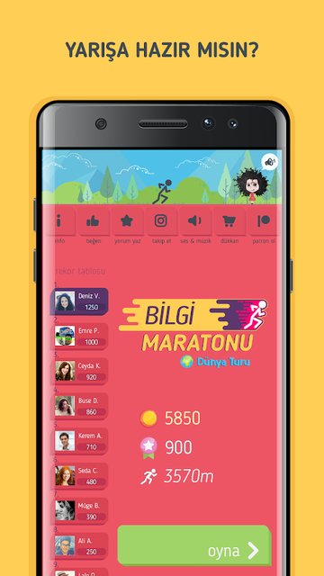 Bilgi Maratonu uygulamasının yaratıcılarından Gripati Digital Entertainment kurucu ortağı Emre Pehlevan uygulama geliştirme hikayesini “inişler ve çıkışlarla dolu 8 yıllık bir oyun girişimi macerası” olarak tanımlıyor. Bilgi Maratonu - Dünya Turu ile klasik bir bilgi yarışmasından çok üst hedefi olan bir oyun tasarlamayı hedefleyen Pehlevan "her doğru cevabın koşan bir çöp adamın aldığı mesafeyi beslemesi ve bu adamın koşarak yeni ülkelere ulaşması oyunu diğerlerinden ayıran artı bir özellik oldu” diyor ve ekliyor “her ulaştığı ülke hakkında verilen detaylı bilgiler ve ülke fotoğrafları da oyuncular için Dünya Ülkeleri Kataloğu gibi bir kaynağa dönüştü”.
