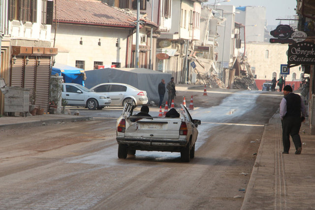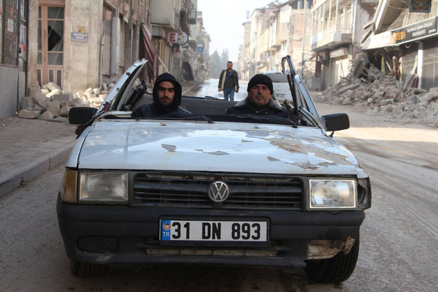 DHA'nın haberine göre aracını çalıştırıp, üzeri açık halde eşyalarını taşıyan Uğural, Antakya'daki hasar tespit merkezine gitti.
