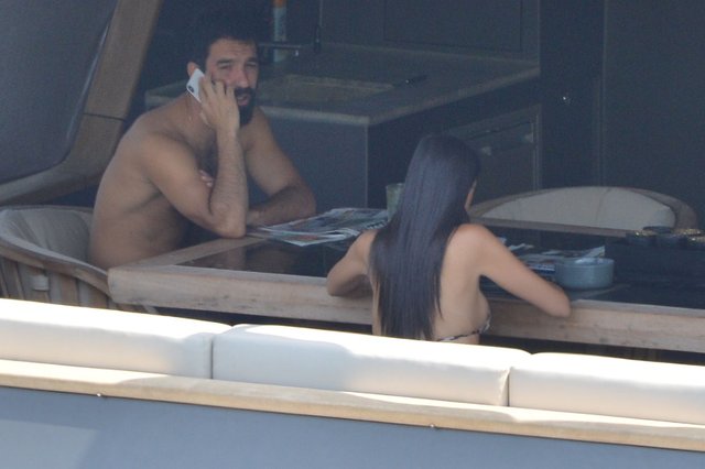 Futbolcu Arda Turan ve eşi Aslıhan Turan'ın tatili tam gaz devam ediyor. Turan ve eşi önceki gün Bodrum Cennet Koyu'ndaydı. Sıcaktan bunalan futbolcu kendisini serin sulara bıraktı. Daha sonra teknenin iç kısmında Aslıhan Turan'ın şişmiş göbeğini ve doğacak çocuğunu seven Turan, eşinin göbeğini defalarca öperek sevmesi objektiflere yansıdı