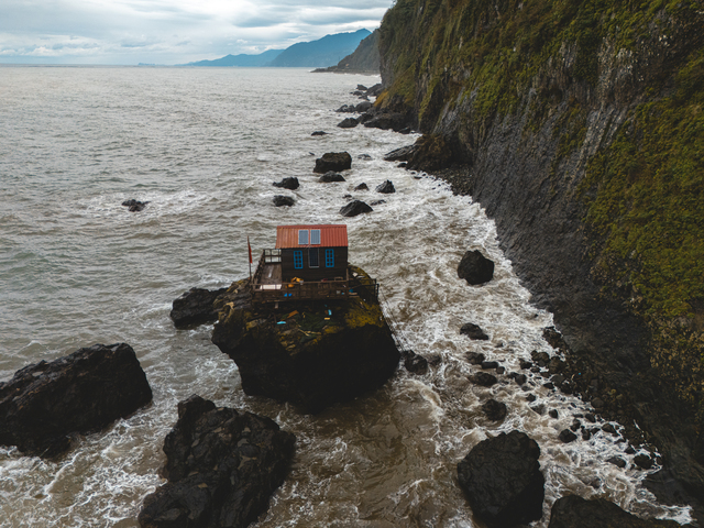 Barınağın bütün parçalarının tekneyle tek tek taşınarak yapıldığı belirtiliyor.