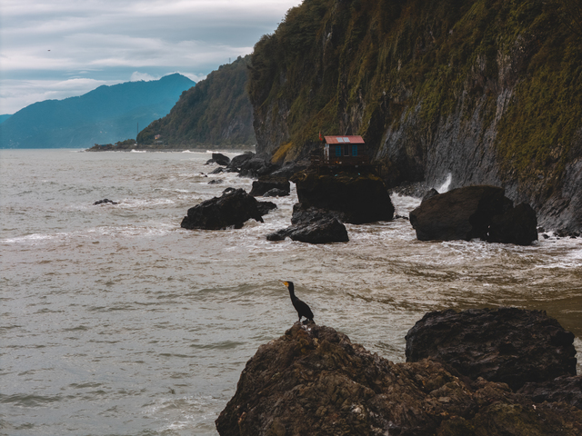 Artvin'in Arhavi ilçesinde, deniz kıyısındaki dev kayanın üzerine 5 ayda yapılan 'Martı Evi' görenlerin dikkatini çekiyor