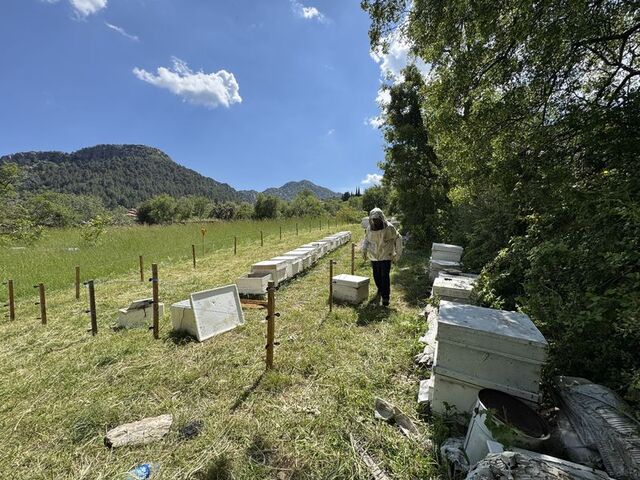 Antalya'da arıcılar, arı kovanlarına dadanan ayılar nedeniyle kovanların etrafını elektrikli tel ile çevirerek önlem alıyor.