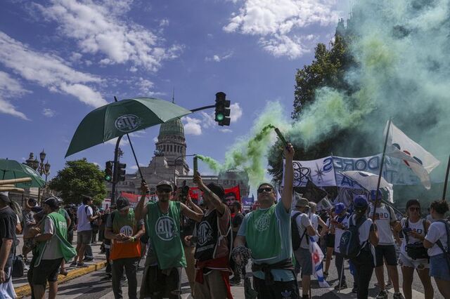 Arjantin'de sendikaların çağrısıyla düzenlenen genel grev kapsamında meydanlara çıkan binlerce kişi, Devlet Başkanı Javier Milei hükümetinin çalışma reformu yasa tasarısına tepki gösterdi.