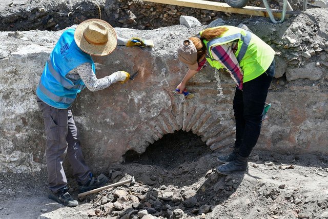 "Arkeopark çalışmamız Roma dönemindeki Ankara'ya dair gerekli uzmanlık alanlarımızla ilgili çalışmalarla devam ediyor. İlk önce tonozlu yapımızın üst kısmının bir kısmı gözükmekteydi. Oradan başlayarak alanda tespitlerimize devam ediyoruz. Burada hem tonozlu yapı hem de sarnıç yapımızın her ikisini de çıkarmak için mücadele ediyoruz.