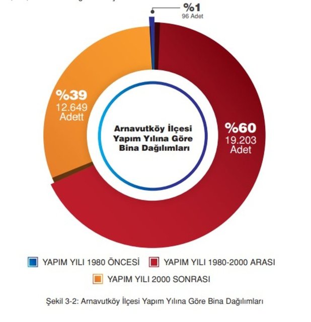Arnavutköy’de, analiz edilen toplam bina sayısı 31.948’dir. Ağır ve çok ağır hasarlı binaların aldıkları depremhasarının, onarılamayacak boyutta olabileceği ve bu hasar seviyelerindeki binaların yıkılıp tekrar yapılması gereğinin ortaya çıkacağı öngörülmektedir.
