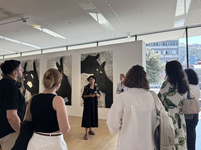 Küratör Nilüfer Şaşmazer, basın izlemesinde, serginin mekansal olarak iki parçadan oluştuğunu belirterek, "Sergide 15 sanatçının en az iki işi var. Türkiye'den tek bir isim var. Diğer sanatçılar farklı coğrafyalardan" dedi.