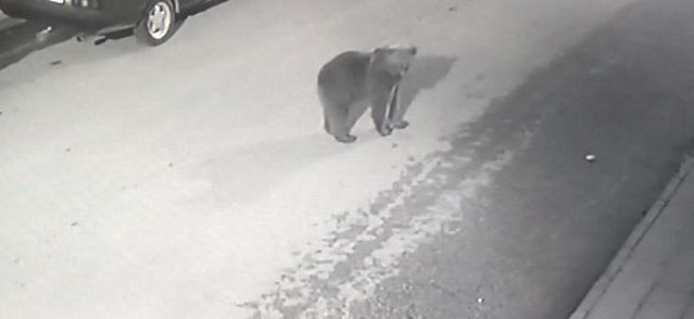 İlçe sakinleri pencerelerden izlediği ayı için sokaklara yiyecek bırakmaya başladı. Sokaklarda dolaşan ayının görüntüleri, paylaşıldığı sosyal medyada ilgi gördü.