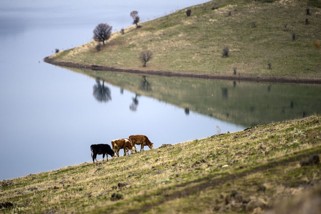 Mevsime bağlı artan sağanak yağışlar nedeniyle otlakların bulunduğu köyde, sahiplerince gün boyu meralarda otlatılan koyun, keçi ve inekler güzel görüntüler oluşturuyor.