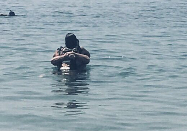 Saatlerce denizin içinde kalan Asena ve Dere, suyun içerisinde adeta aşk tazeledi.