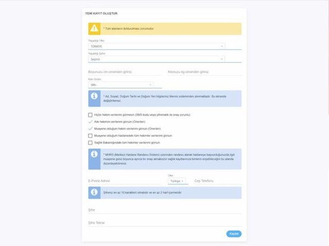 2. E-Devlet şifreniz yoksa Sağlık Bakanlığına kayıtlı Aile Hekiminize cep telefonu numaranızın kaydını yaptırarak, telefonunuza gelecek kısa mesaj ile size iletilen tek kullanımlık erişim kodunu kullanarak sisteme giriş yapabilirsiniz.