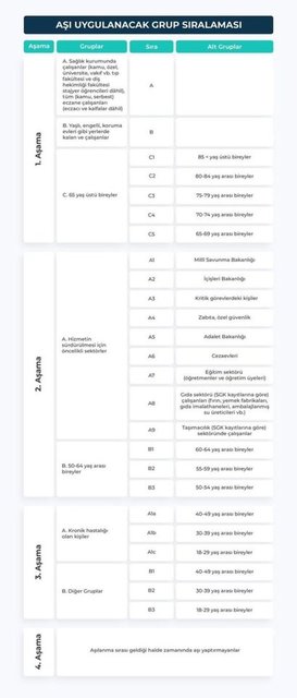 * Dördüncü grupta ise ilk 3 grupta yer almayan vatandaşlara yapılacak.