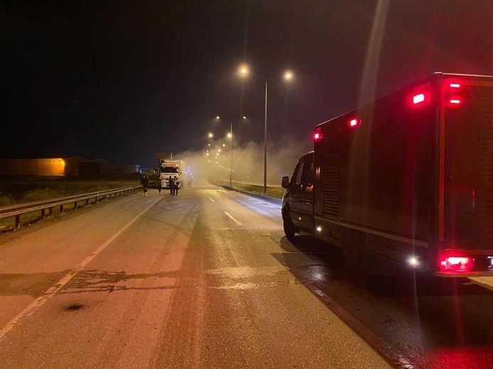 Gümrük çıkışlı olduğu için dorse boşaltılamazken, TIR'ın da sızıntıdan kaynaklı arızalandığı tespit edildi. TIR ile dorse yüklenici firma tarafından çekilip, bölgeden götürüldü. Daha sonra kapanan yol, yeniden trafiğe açıldı.