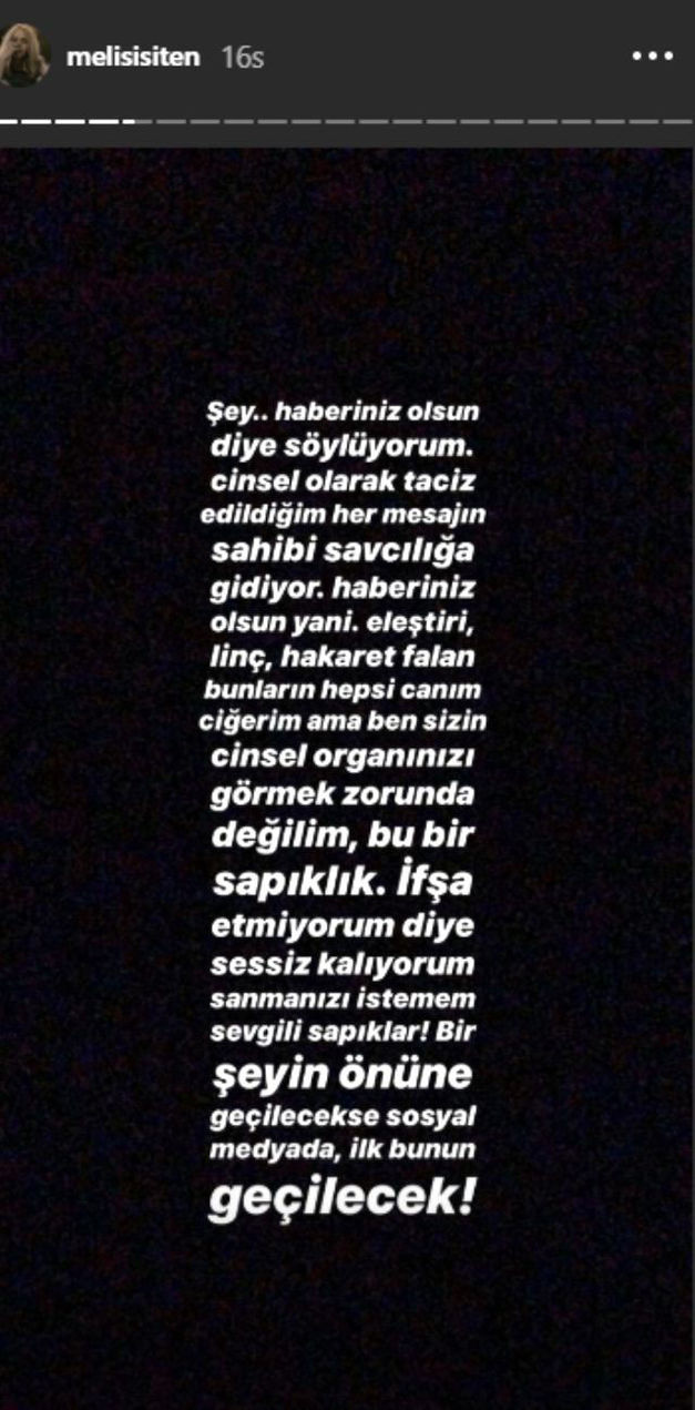 Neredeyse ünlülerin kabusu haline gelmeye başlayan taciz mesajlarından yaka silken ünlü isimlerden biri de Melis İşiten oldu.