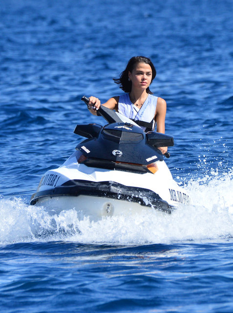 Daha sonra denize doğru ilerleyen Aslıhan Karalar, jet-ski'ye binerek adeta şov yaptı.