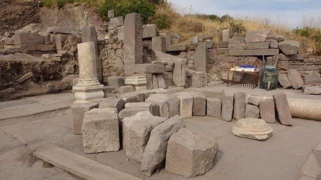 Çünkü Assos'ta mermerden inşa edilmiş nadir yapılardan bir tanesi. Belirli bir bölümünü kazdık. Halen bu alanda kazı çalışmalarımız devam ediyor. Burada bir çöplük alanına rastladık. Bulunan buluntularla M.S. 2'nci yüzyılla, M.S. 6'ncı yüzyıl arasında aktif bir şekilde kullanıldığını tespit ettik" dedi.