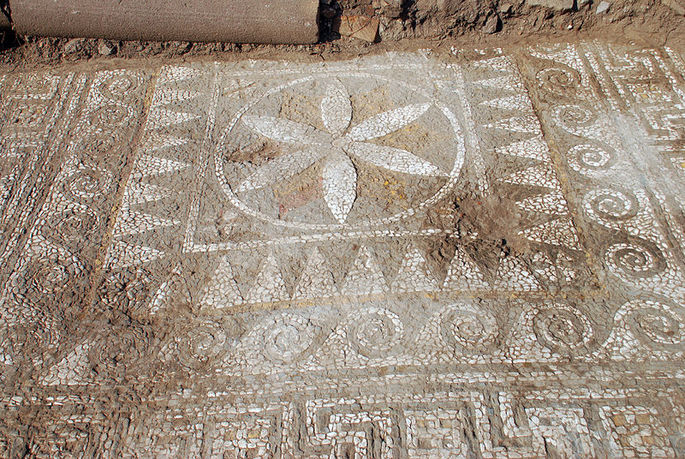 Bunlardan birinin geçen yıllarda başlanan ve halen devam eden batı sur duvarının kenarındaki han yapısı olduğunu belirten Arslan, "Burada da yeni mekanlar ortaya çıkarılmaya devam ediliyor fakat bunun dışında özellikle Kültür ve Turizm Bakanlığımızca başlatılan 'Geleceğe Miras Projesi' kapsamında sergilenmesi düşünülen ve bir parçası gün yüzüne çıkarılmış olan mozaikli yapıda çalışmalar tamamlandı. Kazılar sonrasında Helenistik döneme ait olan mozaiğin tamamen sağlam olarak günümüze kadar korunduğunu gördük. Mozaik, çokgen taşlarla yapılmış, polygonal (çokgen) adını verdiğimiz taşlarla üç renkli bitkisel ve geometrik motiflerden oluşuyor" diye konuştu.
