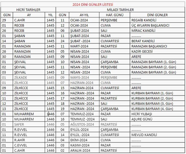 Diyanet İşleri Başkanlığı Din İşleri Yüksek Kurulu Başkanlığı tarafından yapılan vakit hesaplamalarına göre, 2024 yılı hicri yılbaşı tarihi netleşti.