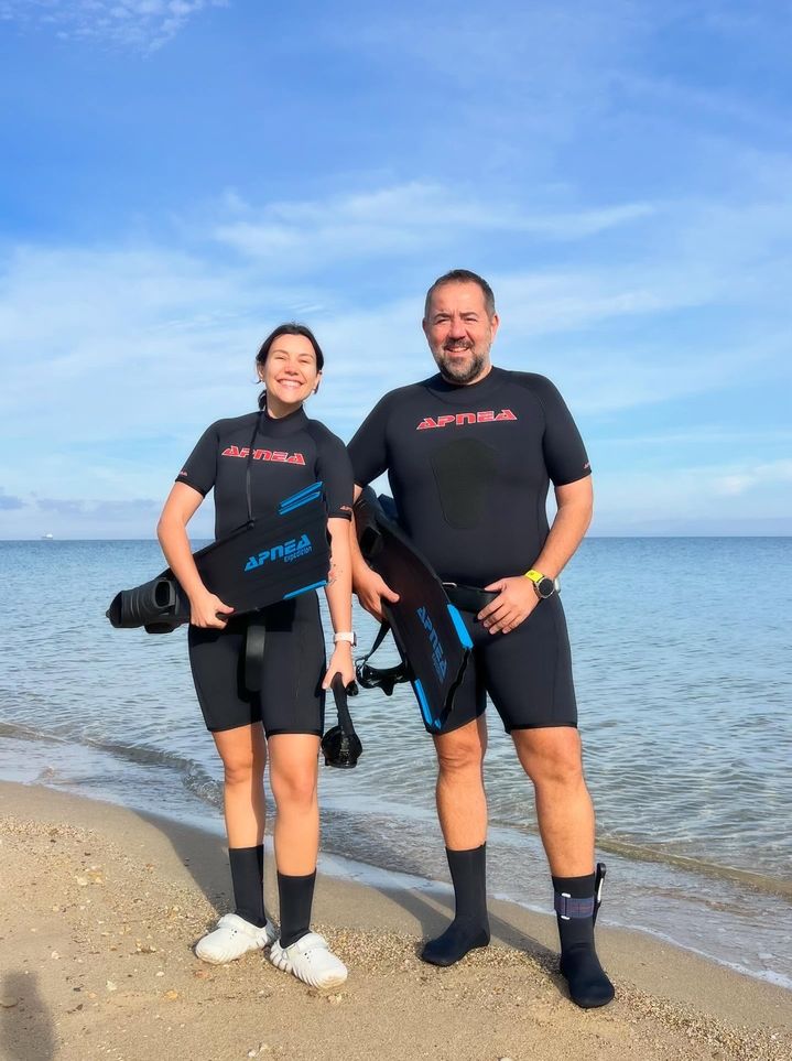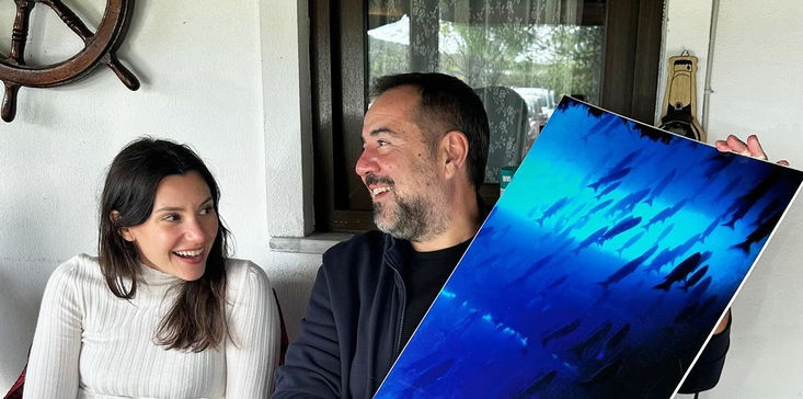 Bozcaada'nın sokaklarını sevgilisiyle turlayan Ata Demirer, sonra da kendisi gibi deniz tutkunu olan Dilara Alemdar ile dalış yaptı.