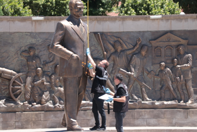 Kayseri'nin Kocasinan ilçesindeki Cumhuriyet Meydanı'nda Kurban Bayramı'nın birinci günü Yaşar Kılıçkaya (59) ile Zeynep Abdullah (31), balta ile Atatürk Anıtı'na vurmaya başladı.