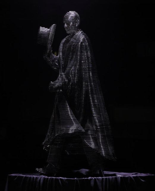 Bursa'da, metal üzerine faaliyette bulunan atölyenin sahibi Rıdvan Sevim, 6 aylık çalışmayla Atatürk'ün siyah pelerinli ve silindir şapkalı fotoğrafını çelikten heykele taşıdı