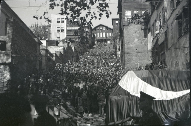 19 Kasım'da Dolmabahçe'den Sarayburnu'na kadar bütün cadde, caddeye inen bütün yollar, yamaçlar, binalar, damlar, cami kubbeleri, minareler insanlarla doldu.