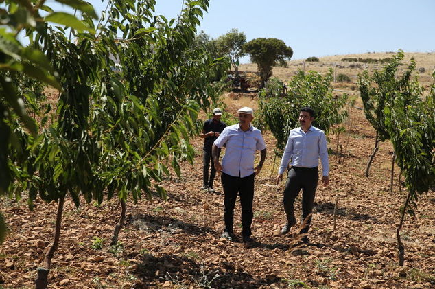 Mardinli müteahhit Vedat Bulut, Mazıdağı ilçesinde hobi amaçlı üretim için satın aldığı atıl araziyi 61 çeşit meyve yetiştirilecek bahçeye dönüştürdü