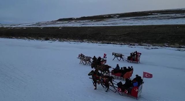 Çıldır Gölü'nün yüzeyinde donmanın başlamasının ardından atlı kızaklar ve kar motorları hazır hale getirildi. Buz kalınlığının henüz istenilen düzeyde olmaması sebebiyle bölgeye gelen misafirler göl kenarında tur attırılıyor.