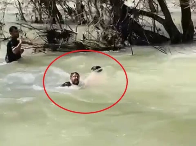 Diyarbakır'da balık avlamak isterken boynuna serpme ağ dolanıp suya düşen Askeri Kaya'yı boğulmaktan arkadaşları son anda kurtardı. O anlar, cep telefonu kamerasıyla görüntülendi.