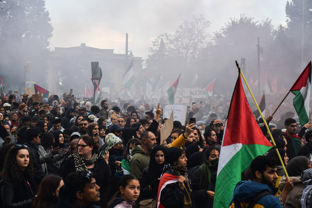 İsrail-Hamas çatışmasının başlamasının ardından Avrupa ülkelerinde Filistin'le dayanışma için bir araya gelmek isteyen göstericiler kısıtlama, yasaklama, polis müdahalesi ve gözaltı kararlarıyla karşılaştı.