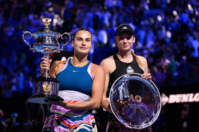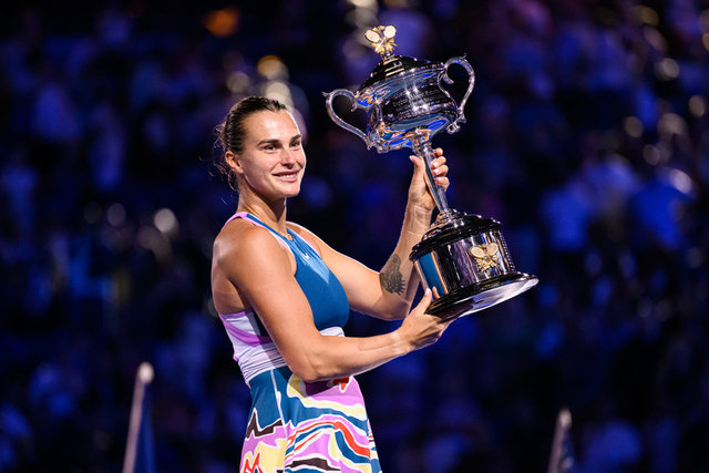 Avustralya Açık Tenis Turnuvası tek kadınlar finalinde, Elena Rybakina'yı 2-1 yenen 5 numaralı seribaşı Aryna Sabalenka şampiyon oldu