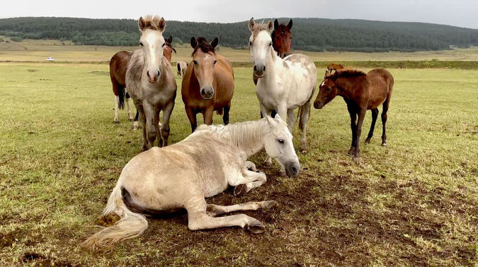 Ayağı kırılan yılkı atını diğer atlar terk etmedi