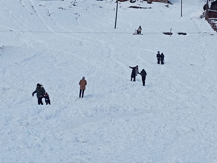 Ziyaretçiler, 40 santimetreye ulaşan karın keyfini çıkarırken, kar topu oynayıp, otomobil şambrelleriyle de kayıyor.