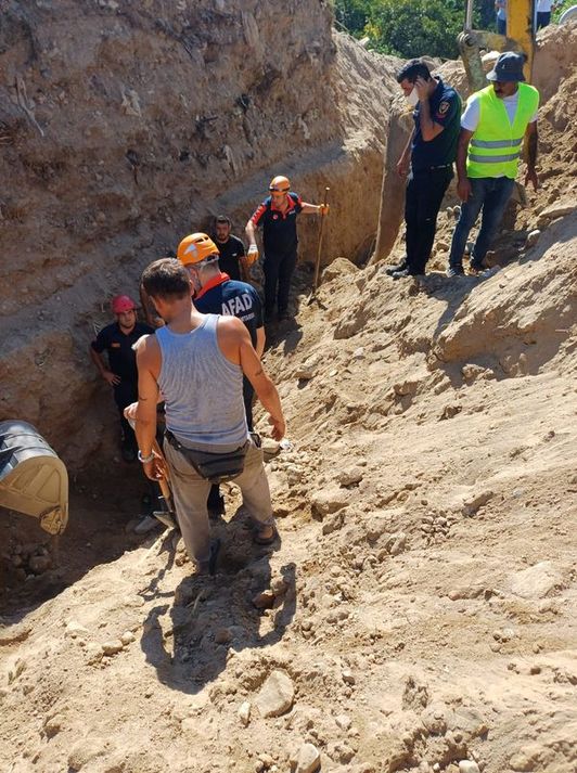 Alınan bilgiye göre, Beşeylül Mahallesi'ndeki arazilerinde iş makinesiyle su hattı açmak için kazı yapan Ahmet Güney (43) toprak altında kaldı.