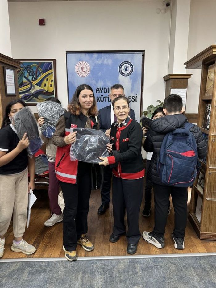 Aydın İl Halk Kütüphanesi'nden gerçekleştirilen etkinlik kapsamında çocuklar ve gençlerle bir araya gelen kütüphane yetkilileri, öğrencilere çanta dağıttı.