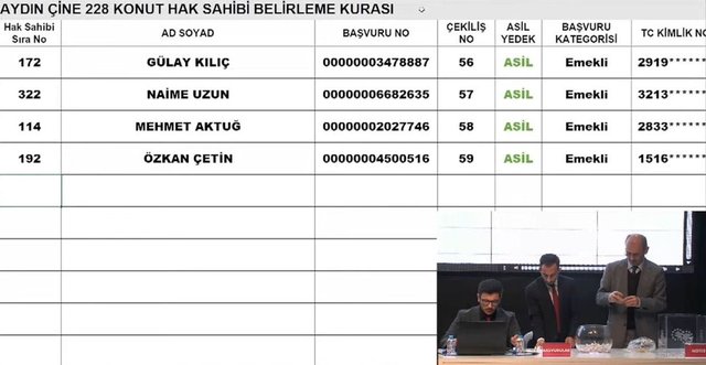 İşte, 31 Ocak Aydın TOKİ kura sonuçlarında çıkan bazı hak sahipleri...