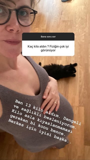 Karnı burnunda pozunu yayınlayan Tatari, takipçisinin "Kaç kilo aldın? Fiziğin çok iyi görünüyor" sorusunu "Ben 13 kilo aldım. Dengeli ve sağlıklı besleniyorum. Kilo asla kıyaslanmaması gereken bir konu bence. Herkes için iyisi başka" şeklinde cevapladı.