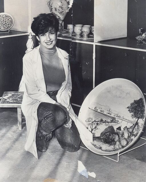 Fotoğrafta, kıvançla eserimin önünde görülüyorum. Böyle lenger tabak denir. Koca tabaklara, vazo ve çeşitli porselen objelere serbest çalışmalar yapardık. Şablonlu klasik çalışmalar da olurdu arada. Eurovision Şarkı Yarışması'nda yarışıp ayağımın tozuyla işe döndüğüm yıl. Yarışma konusunda müdüriyetten izinliyim tabii. Hiç unutmam askere gider gibi uğurlanmıştım Yıldız Porselen'den."