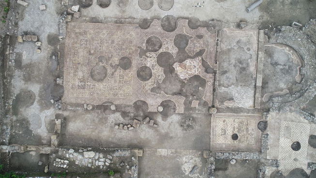 Hatay'ın Arsuz ilçesinde, portakal bahçesinde bulunan 6. yüzyıla ait Kutsal Havariler Kilisesi'nin sürdürülen sezon kazısında bir kölenin azat edilmesinden sonra tanrıya teşekkür için yaptığı belirlenen mozaik gün yüzüne çıkarıldı.