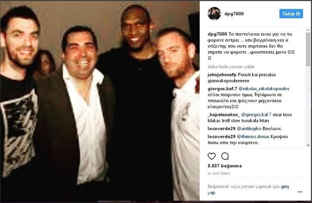 Mantzaris ve menajerinin olduğu fotoğrafı paylaşan Başkan Giannakopoulos, "Pantolonlar erkekler içindir. Sen ve senin menajerin gibiler şort bile giyemez. Etek veya bikini giymelisiniz" notunu eklemişti.