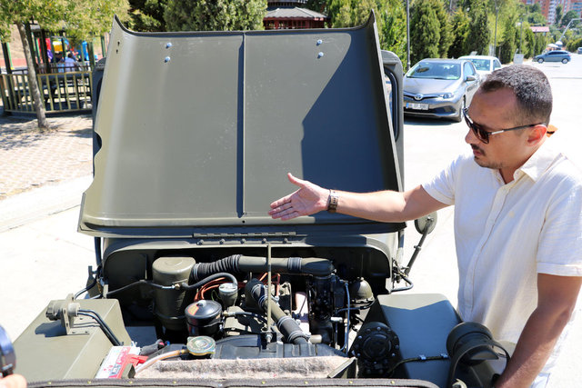 Serkay Kuyumcu, eşi Şükran Kuyumcu'nun da desteğiyle Kıbrıs gazisi babasının fotoğrafında gördüğü cipin birebir aynısını toplayabilmenin mutluluğunu yaşadığını belirterek, "Bu aracı seçmemdeki amaç rahmetli babam 1974 Kıbrıs harekatında muharip gazi olması. O dönemde ben bundan çok etkilenmiştim. Ben bu aracı babamın askerlik fotoğraflarında gördüm."